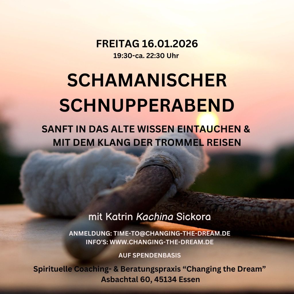 Du interessierst Dich für den Schamanismus und überlegst, ob Du zum Schamanischen Frauenkreis oder in den schamanischen Jahreskreis kommen möchtest? Oder Dich rufen meine Schamanischen Medizinwochenenden für Frauen und Du möchtest mich kennenlernen? Dann kannst Du an diesem Termin reinschnuppern: